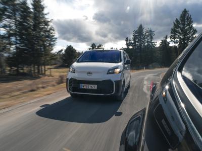 Kommen wir aber zum wichtigsten Teil eines Nutzfahrzeuges. Was kann ich damit alles transportieren? Nun, unser Proace hat ein Ladevolumen von bis zu 5,8 m3 und die Nutzlast liegt bei 1.300 Kilogramm. In meinem Fall konnte ich damit zwei Stapel Reifen, ein riesiges Zelt, eine noch größere Bodenmatte, allerlei Werkzeug, einen Wagenheber, einen Kompressor und mein Kamera-Equipment spazierenfahren. Damit habe ich es weder geschafft, das Volumen noch die maximale Nutzlast des Proace auch nur annähernd auszureizen. Trotz der bereits üppigen Beladung hat der zwei Liter große Dieselmotor keine Schwierigkeiten, auf Reisetempo zu gelangen.
