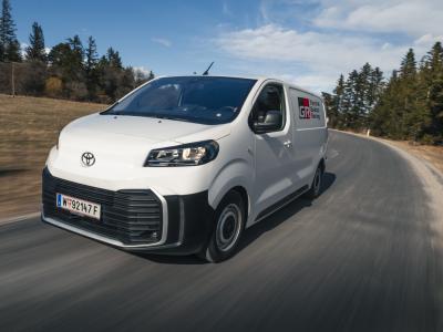 Gehen wir zunächst noch ein wenig auf den Proace ein. Optisch schießt er natürlich niemanden aus den Socken, denn am Ende des Tages ist er ein weißer Kastenwagen. Er basiert auf einer Plattform des Stellantis-Konzerns und teilt sich damit die Basis unter anderem mit dem Peugeot Expert und dem Citroën Jumpy. Trotz dieser Geschwister ist der Proace aber deutlich als Toyota erkennbar. Um ihn aber noch etwas abzusetzen, habe ich unser Testfahrzeug mit einer passenden Beklebung versehen – die gibt's natürlich so nicht serienmäßig bei Toyota.